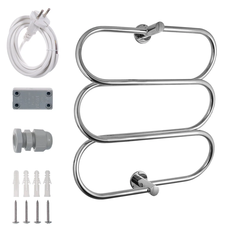 Технические характеристикиГабариты, см: 60х60х14,4.Материал: нержавеющая сталь.Вид: лесенка объёмная.Количество секций: 3.Мощность, Вт: 60.Напряжение питания сети: 220-240 В, 50 Гц.Цвет: блестящий хромКомплектация: полотенцесушитель на кронштейнах — 1 шт.; электрический шнур (150 см) с вилкой — 1 шт.; муфта переходная для подключения эл. шнура — 1 шт.; уплотнительные прокладки — комплект; шурупы с дюбелями — комплект; инструкция — 1 шт.