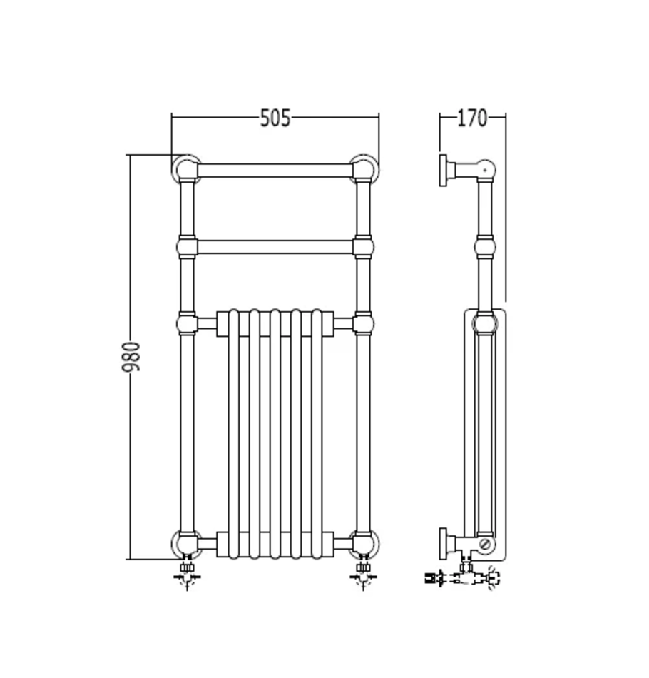 Полотенцесушители/радиаторы компании Devon&Devon выполнены из сантехнической латуни, что предусматривает собой возможность установки изделий на систему горячего водоснабжения, исключая негативного воздействия кислорода, находящегося в теплоносителе.