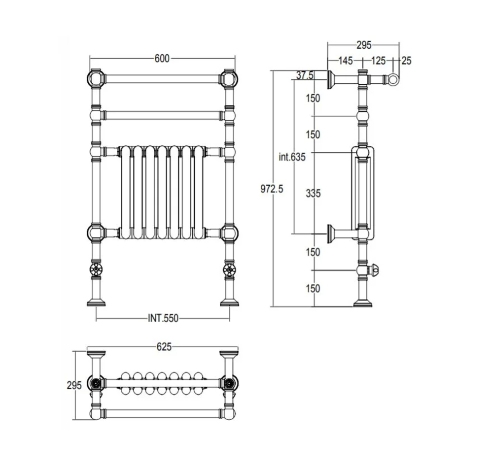 Полотенцесушитель с радиатором Margaroli Armonia 9-204 9204SNRAL, высота 97.3 см, ширина 62.5 см, сатин никель, радиатор черный