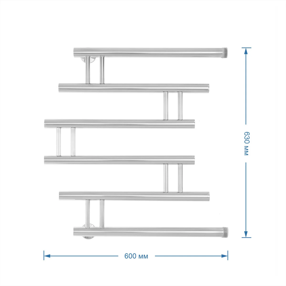 Полотенцесушитель водяной Energy Modern 600 x 500, ширина 56 см, высота 63 см, боковое подключение 1 дюйм, черный матовый, EWTRMODRN06050R905M