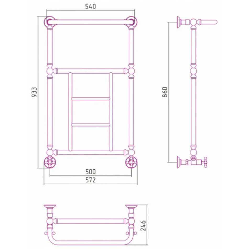 Полотенцесушитель водяной Сунержа Ренессанс 1452 30-0282-8650, высота 86 см, ширина 50 см, нижнее подключение 50 см, с полкой, цвет матовый белый