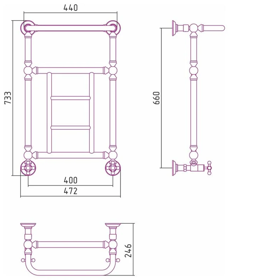 Полотенцесушитель водяной Сунержа Ренессанс 1452, высота 66 см, ширина 40 см, цвет шампань, 020-0282-6640