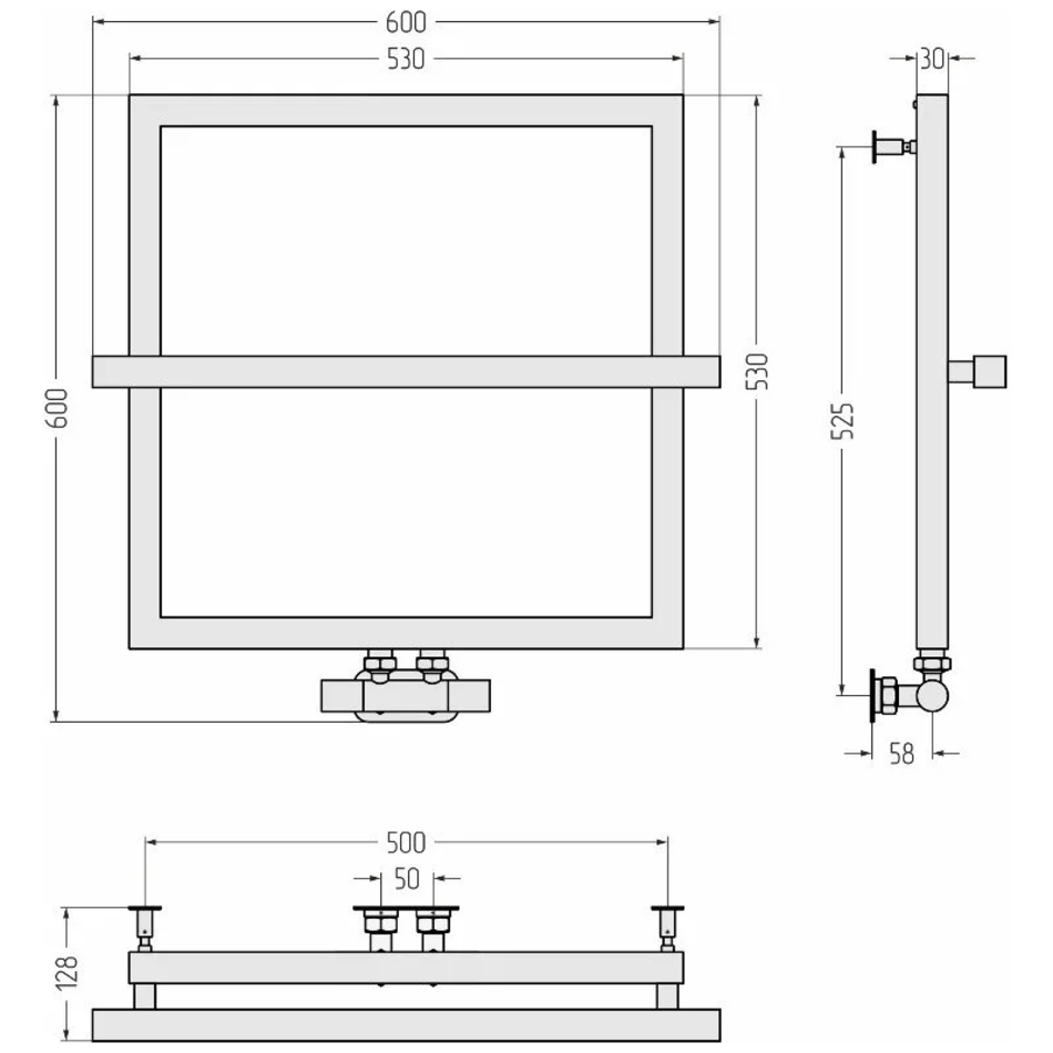 Полотенцесушитель водяной Сунержа Штиль EU50+, высота 60 см, ширина 60 см, цвет матовый черный, 31-0256-5353