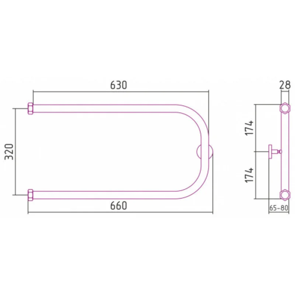 Полотенцесушитель водяной Сунержа П-образный+, высота 32 см, ширина 65 см, боковое подключение 32 см, цвет шампань, 020-4003-3265