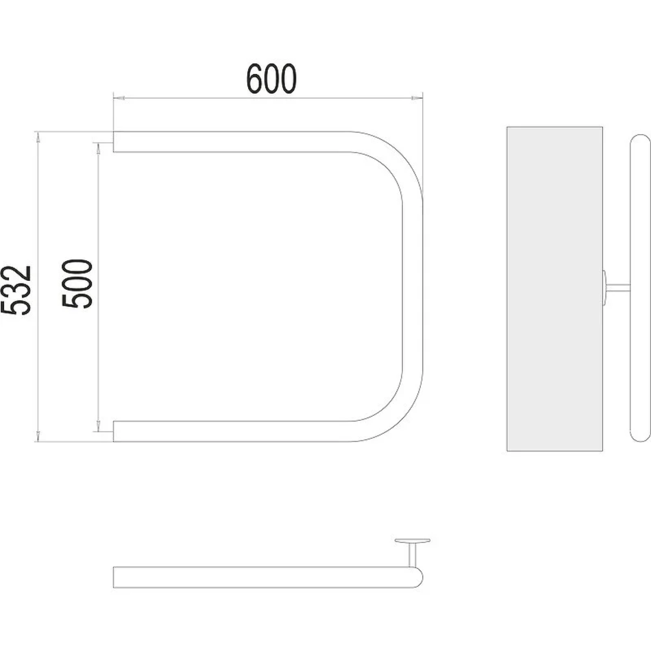 Полотенцесушитель водяной Terminus 4620768881602, П 500х600, ширина 60 см, высота 53.2 см, боковое подключение 50 см, бесшовная труба, хром