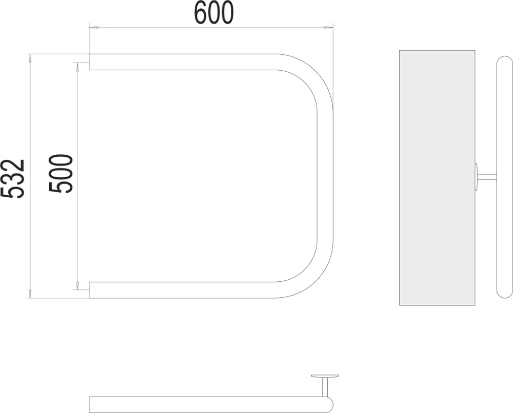 Полотенцесушитель водяной Terminus П-образный 4620768881381, ширина 60 см, высота 53 см, боковое подключение 50 см, 1 дюйм, цвет нержавеющая сталь