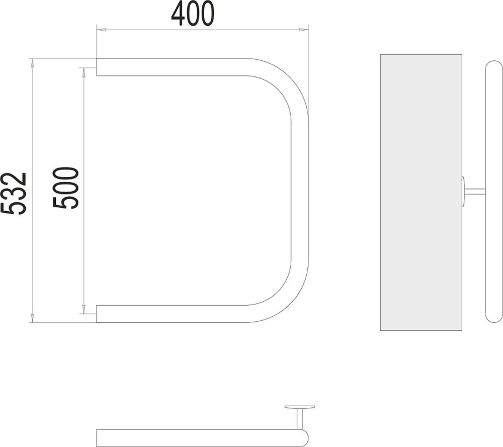 Полотенцесушитель водяной Terminus П-образный 4620768881459, ширина 40 см, высота 53 см, боковое подключение 50 см, 1 дюйм, цвет нержавеющая сталь