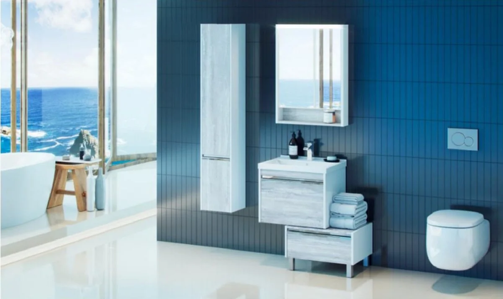 Пенал Монтаж: подвесной Размер: 30 x 26.5 x 163 см Полка вкладная Полки стеклянные: 3 Навес: 2 Фасады: 2 С системой плавного закрывания Покрытие: ламинат Материал: МДФ Форма: прямоугольная Цвет: бетон пайн