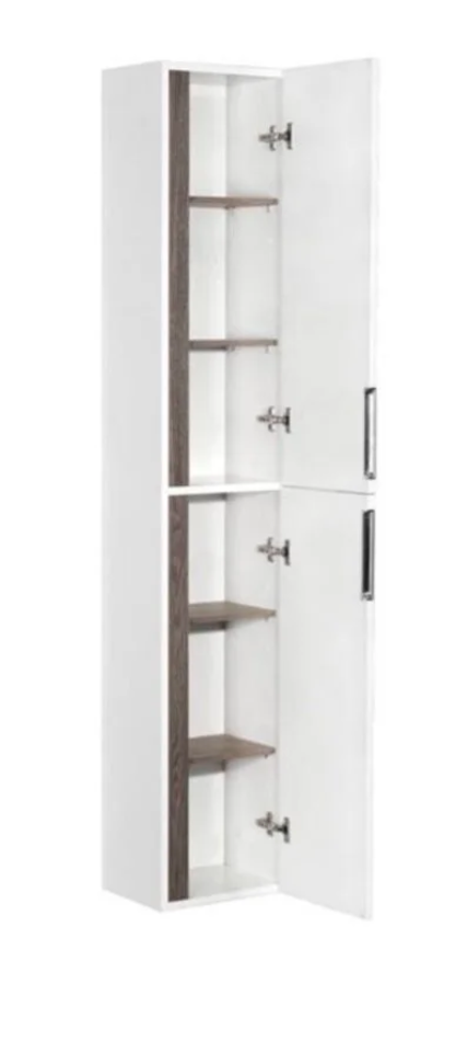 Пенал Монтаж: подвесной Размер:31 x 25 x 169.4 см Полки: 4 Навес: 2 Фасады: 2 С системой плавного закрывания Покрытие: краска Материал: МДФ Форма: прямоугольная Цвет: белый/грецкий орех