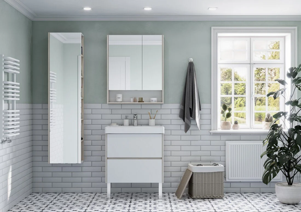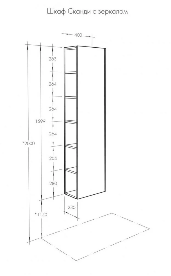 Пенал Акватон Сканди 40 см, 1A253403SDB20 с зеркалом, подвесной, белый/дуб верона