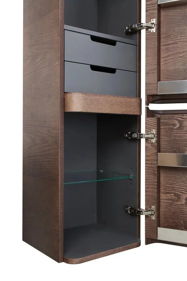 Пенал подвесной 40 см, правый, материал МДФ, покрытие шпон, цвет орех. Двери с доводчиками. В комплекте 4 полки и два ящика.