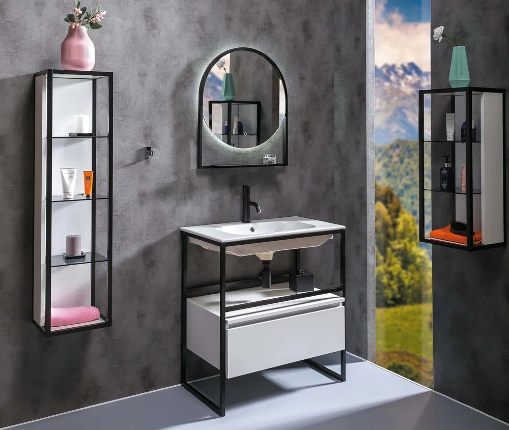 Пенал высокий Размер: 30 x 26.5 x 120 см Монтаж: подвесной Без дверок Вкладные полки Форма: прямоугольная Материал: ДСП, алюминий, стекло Цвет: белый