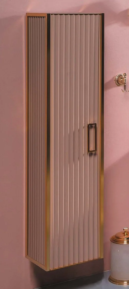 Пенал без ножек Размер: 35 x 30 x 148 см Монтаж: подвесной Двери распашные: 1 Система плавного закрывания Форма: прямоугольная Материал: МДФ, алюминий Цвет: капучино, золото