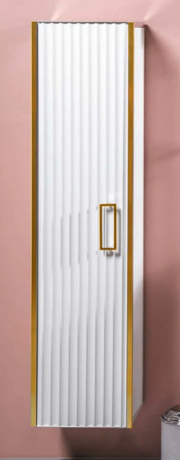 Пенал без ножек Размер: 35 x 30 x 148 см Монтаж: подвесной Двери распашные: 1 Система плавного закрывания Форма: прямоугольная Материал: МДФ, алюминий Цвет: белый, золото