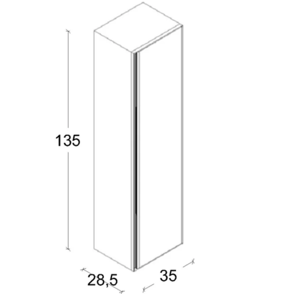 Пенал Размер: 35 x 28 x 135 см Монтаж: подвесной Двери распашные: 1 Система плавного закрывания Форма: прямоугольная Материал: МДФ Цвет: cashmere fuga