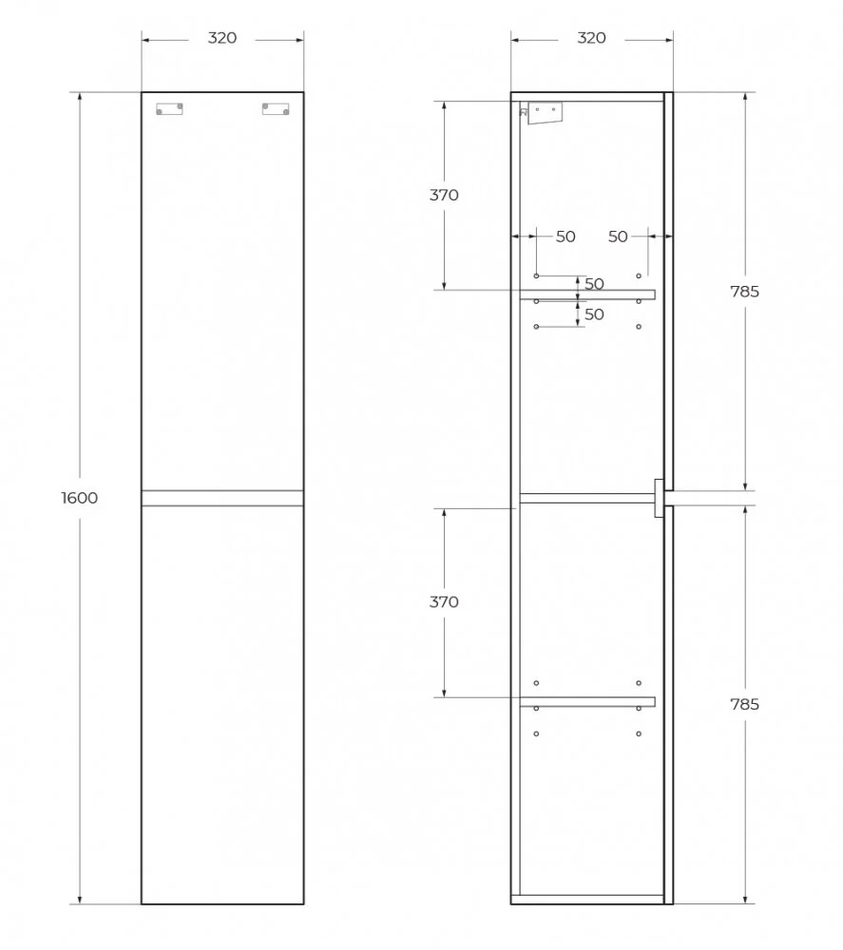 Пенал Belbagno Albano-1600-2A-SC-CVG-P, 32 см, подвесной, серый
