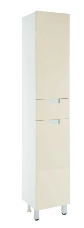 Размер: Ш35 х Г33.9 х В180 см 2 распашных фасада, 1 выдвижной ящик, полки Установка: напольная Материал фасада: МДФ Материал корпуса: ЛДСП Покрытие: краска глянцевая Цвет: бежевый