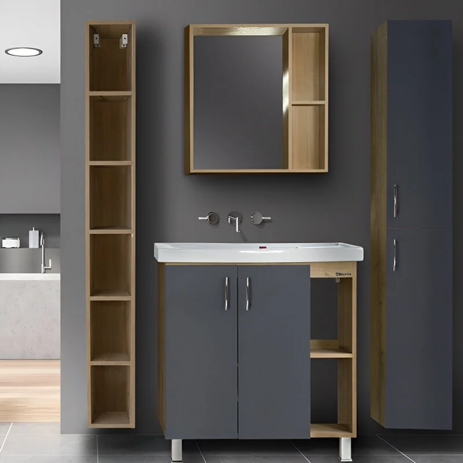 Пенал Bellezza Рона 30 см, подвесной, натуральный дуб/серебро, универсальный, 4624102180512