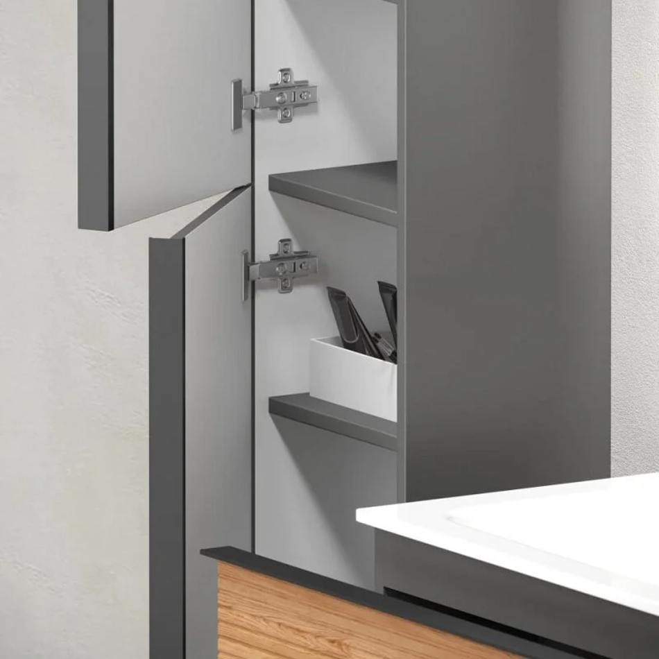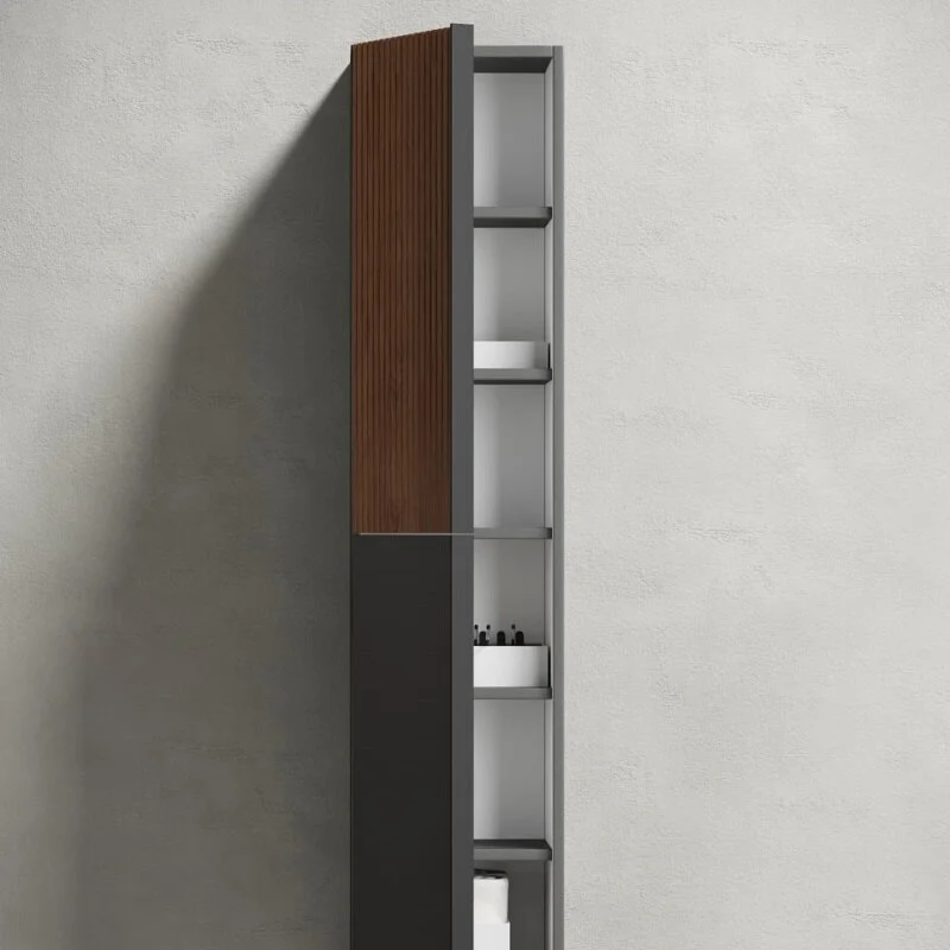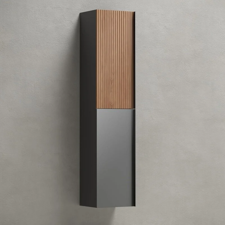 Шкаф-пенал SANCOS Delta подвесной, дуб красный/графит, две дверцы, петли с доводчиками, расположение петель R/L, ручки чёрные профильные накладные, 350х300х1600 мм, арт. PDL35GR