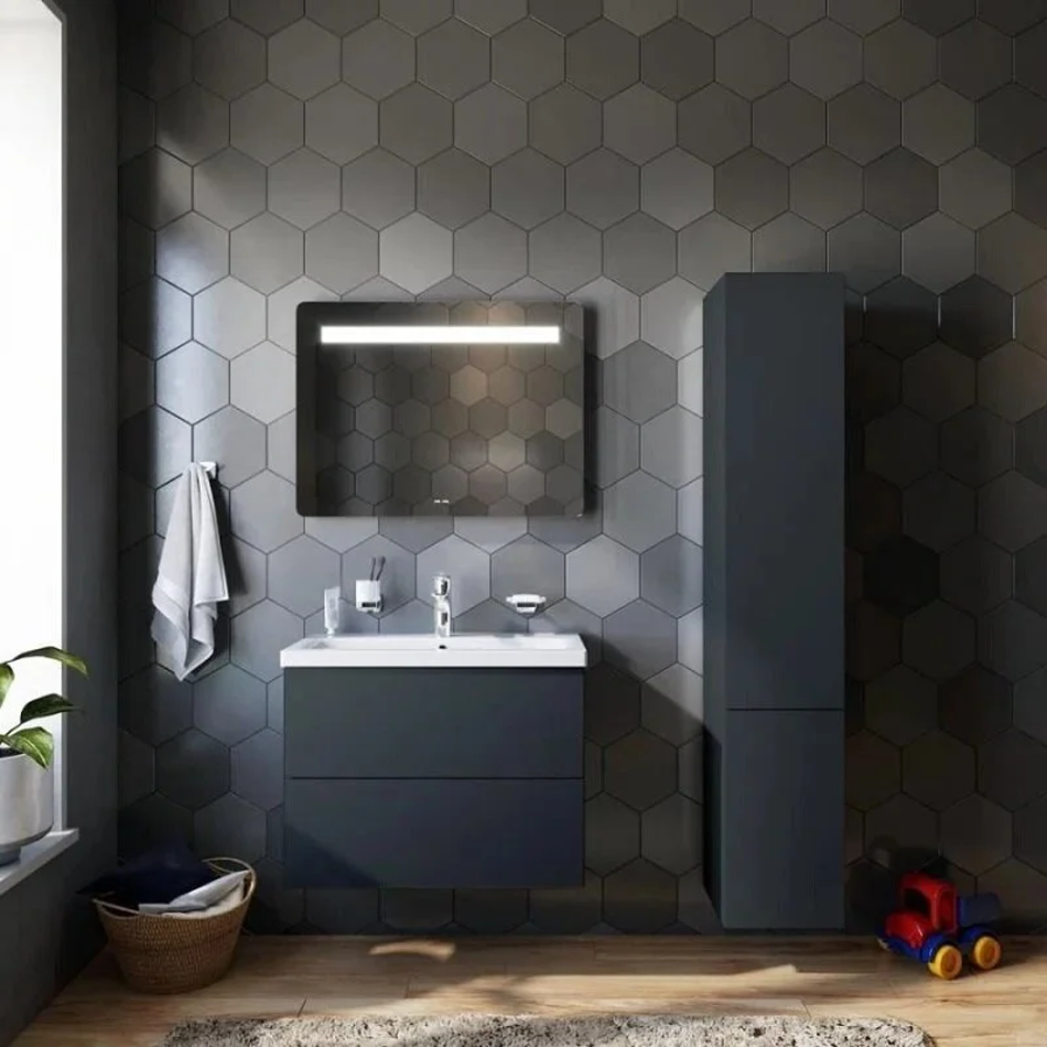 Трендовый дизайн мебели для ванной комнаты Gem не уступает комплектам по гораздо более высокой цене.