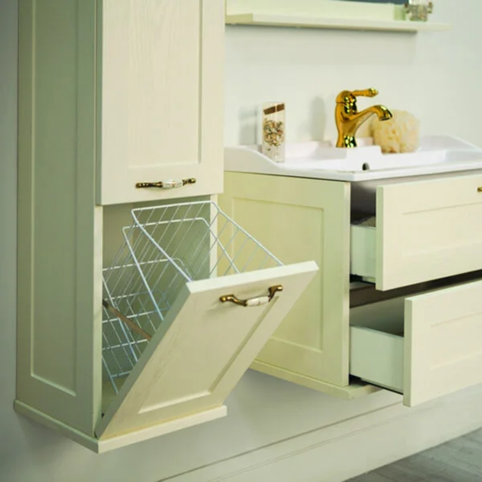 Шкаф-пенал «Акватон Леон» выбирают ценители уютных классических интерьеров. Компактное и эргономичное подвесное изделие экономит пространство ванной комнаты. Мебель, оформленная пленкой с фактурой под дерево, смотрится натурально и презентабельно. Фасады двух отсеков снабжены доводчиками плавного закрывания. Изящная бронзовая фурнитура с цветочным орнаментом придает мебели визуальную легкость и шарм.