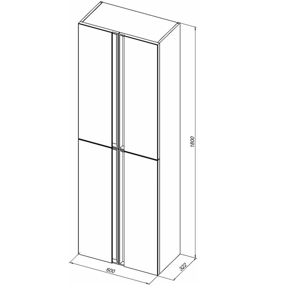 Габариты (ШхВхГ): 600х1800х322 мм.