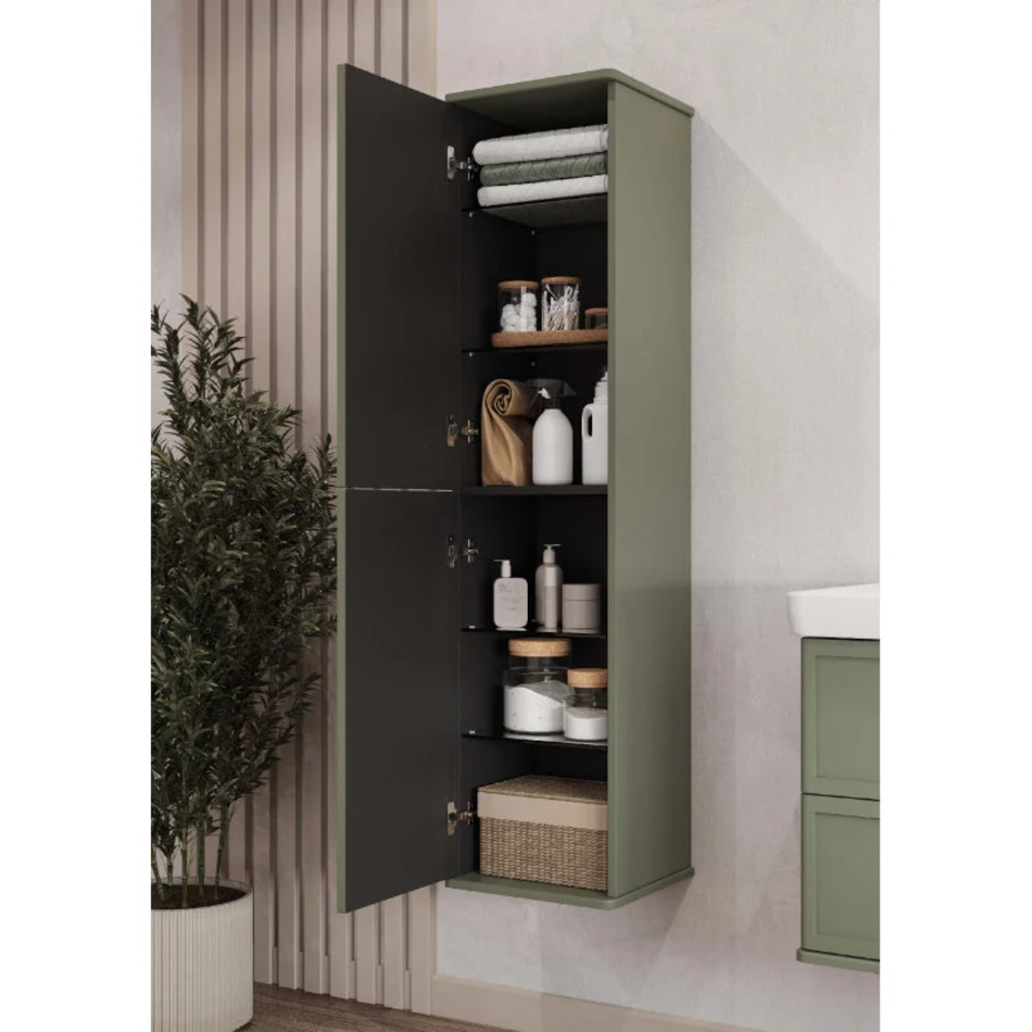 Комплектация Шкаф-колонна- 1шт., регулируемый навес - 2, ручки - 2, полки стеклянные - 4, фасад- створка -2 (петли с интегрированной системой плавного закрывания)