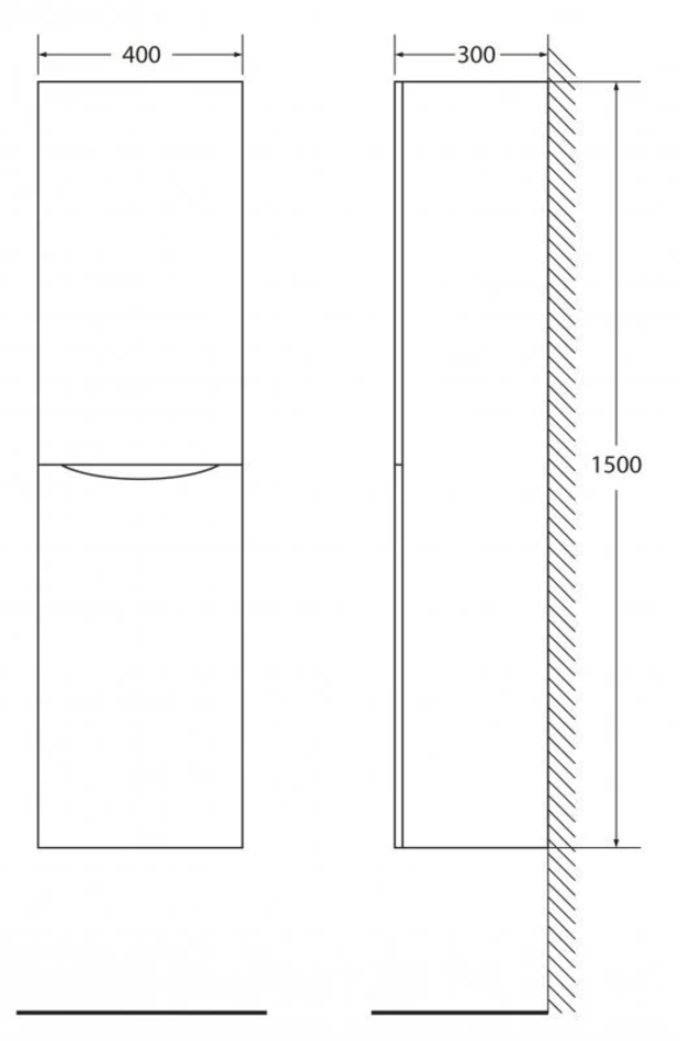 Шкаф-пенал подвесной BelBagno FLY-MARINO-1500-2A-SC-BO-P-R, 40 х 30 х 150 см, Bianco Opaco/белый матовый, правосторонний