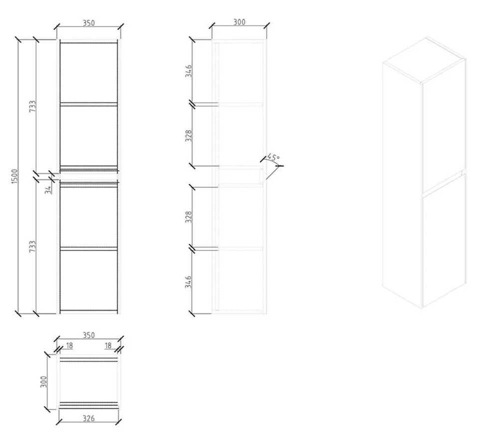 размер в сборе Ш х Г х В: 350 x 300 x 1500 мм