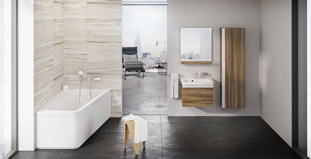Завершает композицию концепции д/ванных комнат 10°, равномерно распределив пространство на трех полках. Дизайн соответствует основной идее всей концепции 10°. Вместо ручек пенал оригинально открывается с помощью усеченных граней передней дверцы. Два вида декора (глянцевый белый и темный орех) позволяют задумать ванную комнату по индивидуальным идеям.