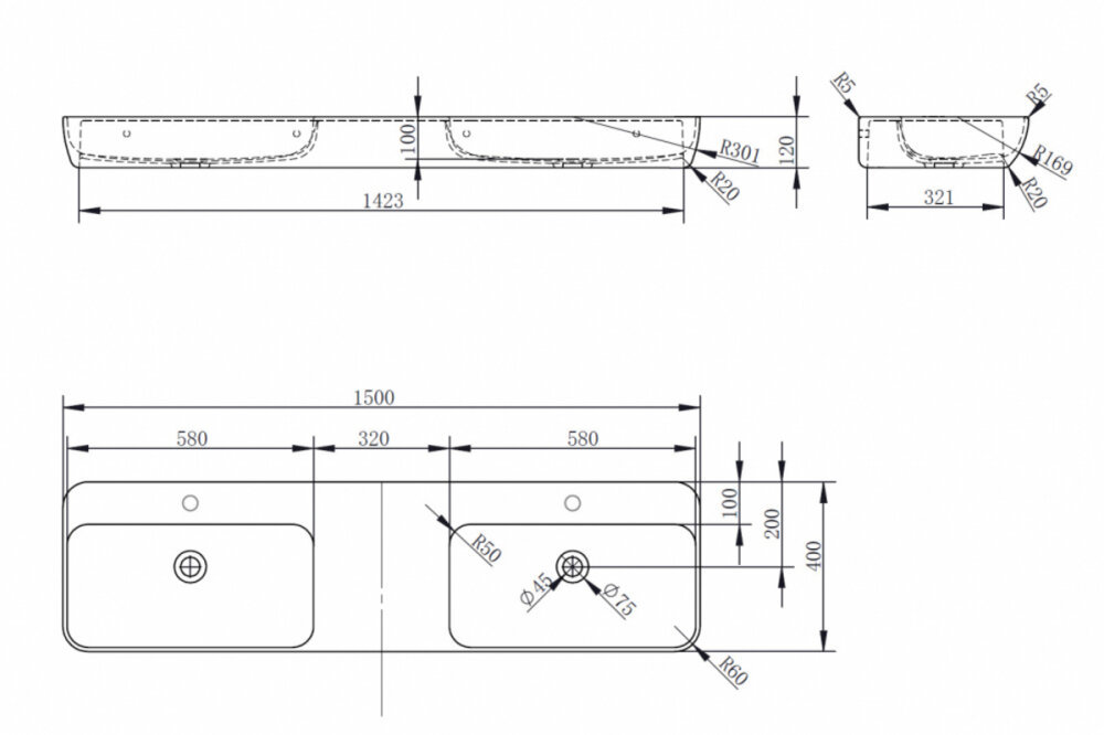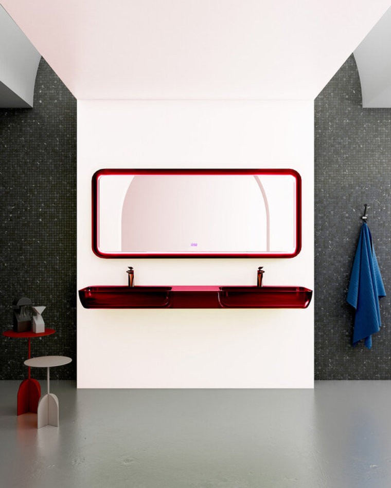 Раковина Abber Kristall AT2807Rubin, 150 х 40 см, подвесная, прозрачная, двойная, красная