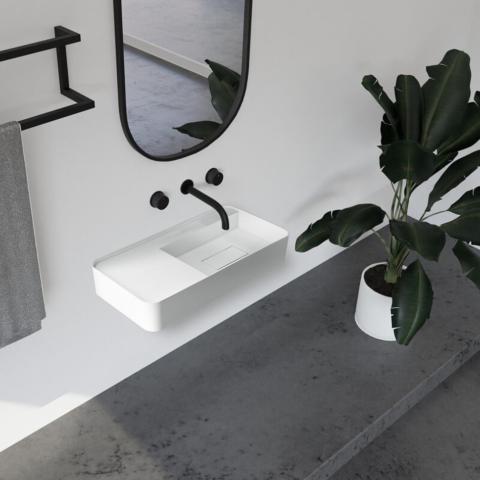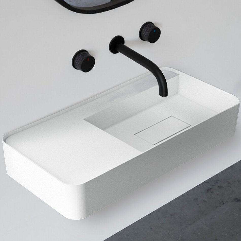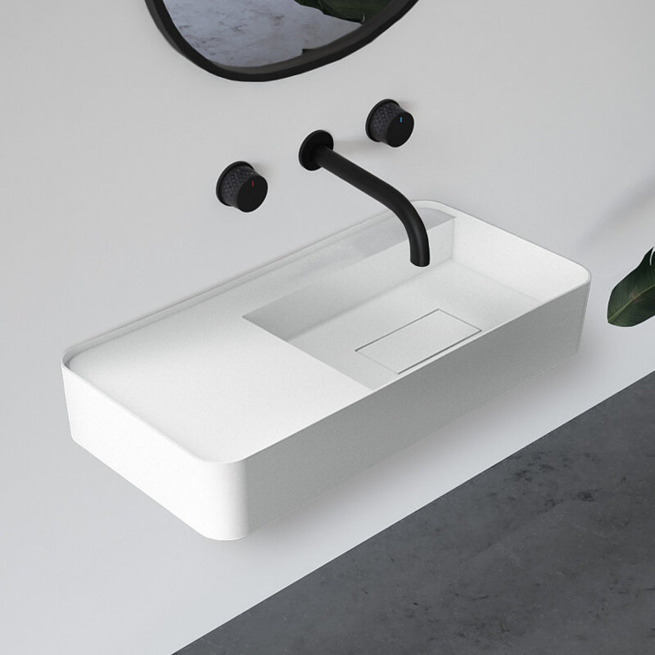 Раковина Abber Stein AS2627-0.8, 80 см, подвесная, искусственный камень, цвет белый матовый