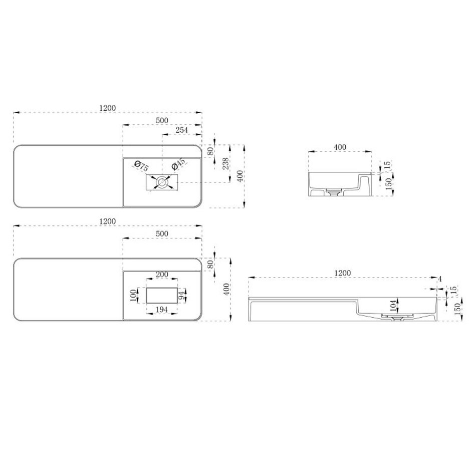Раковина Abber Stein, 120 см, подвесная, искусственный камень, цвет белый матовый, AS2627-1.2