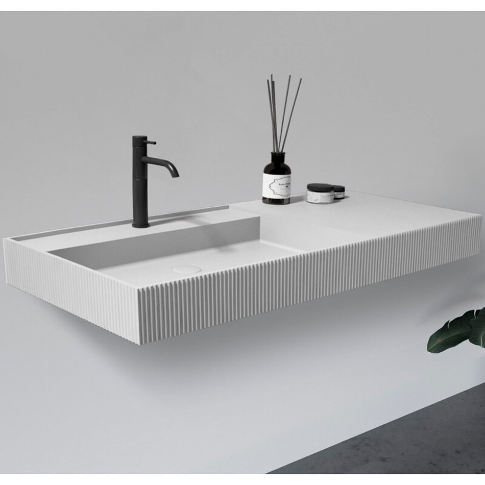 Раковина Abber Stein, 120 см, подвесная, с донным клапаном, искусственный камень, цвет белый матовый, AS2628