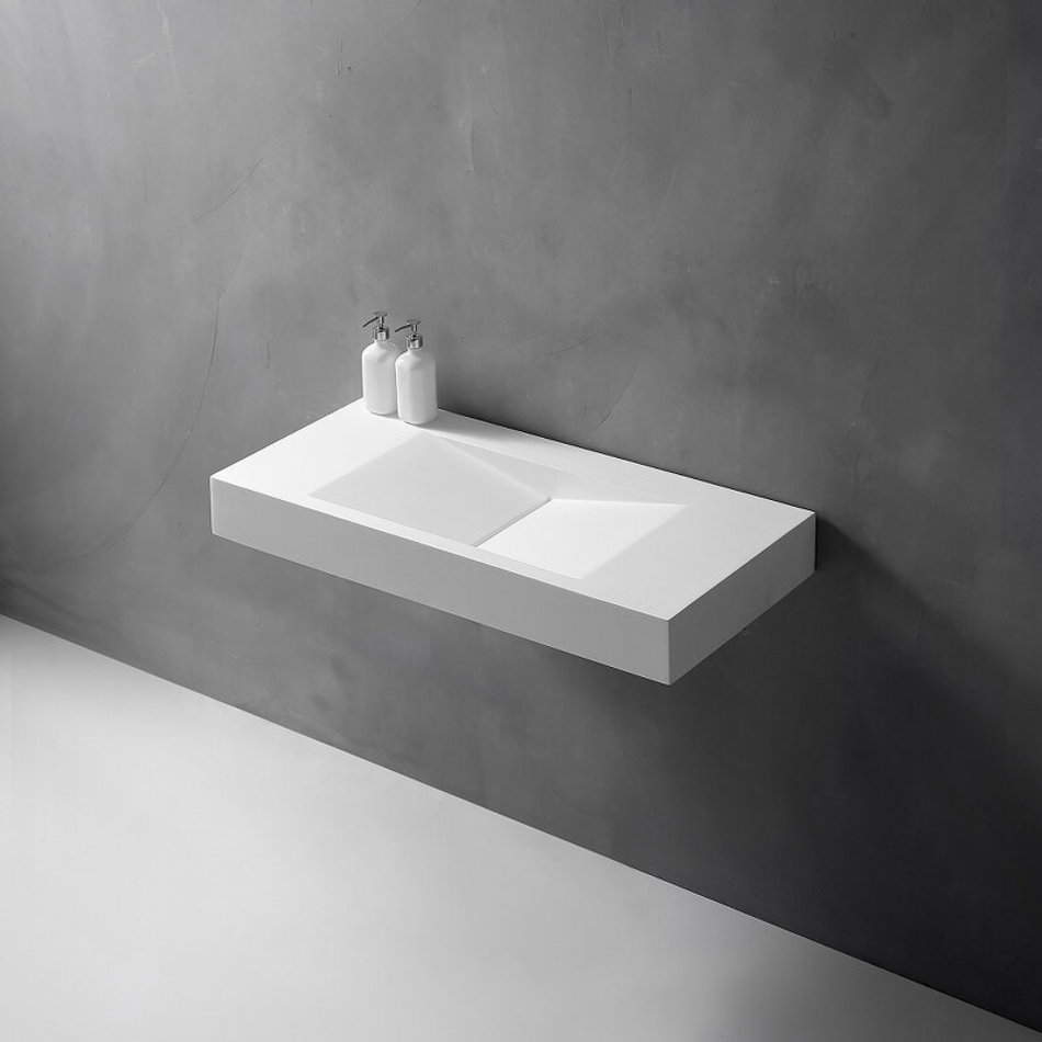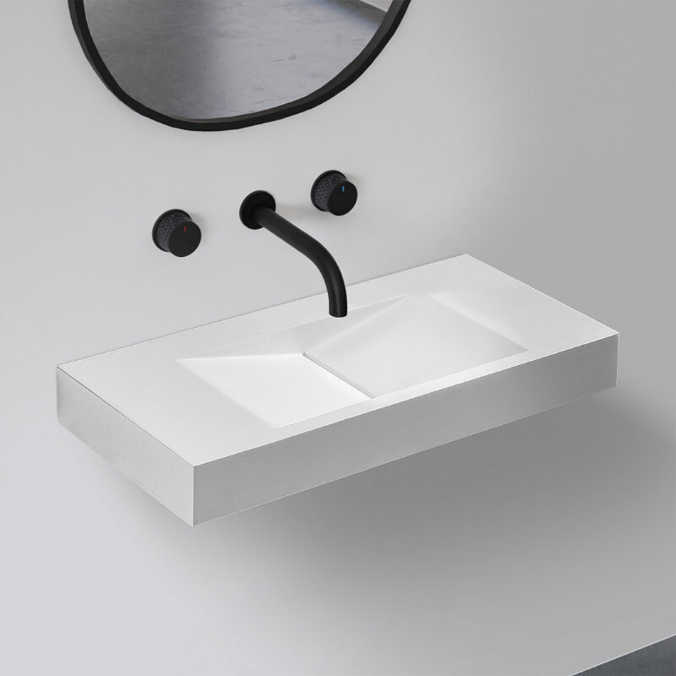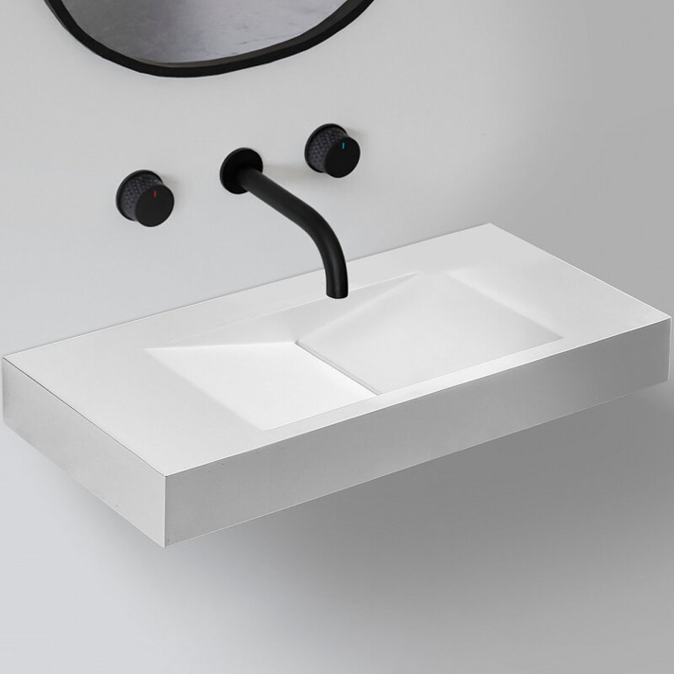 Раковина Abber Stein AS2641, 100 см, подвесная, с донным клапаном, искусственный камень, цвет белый матовый