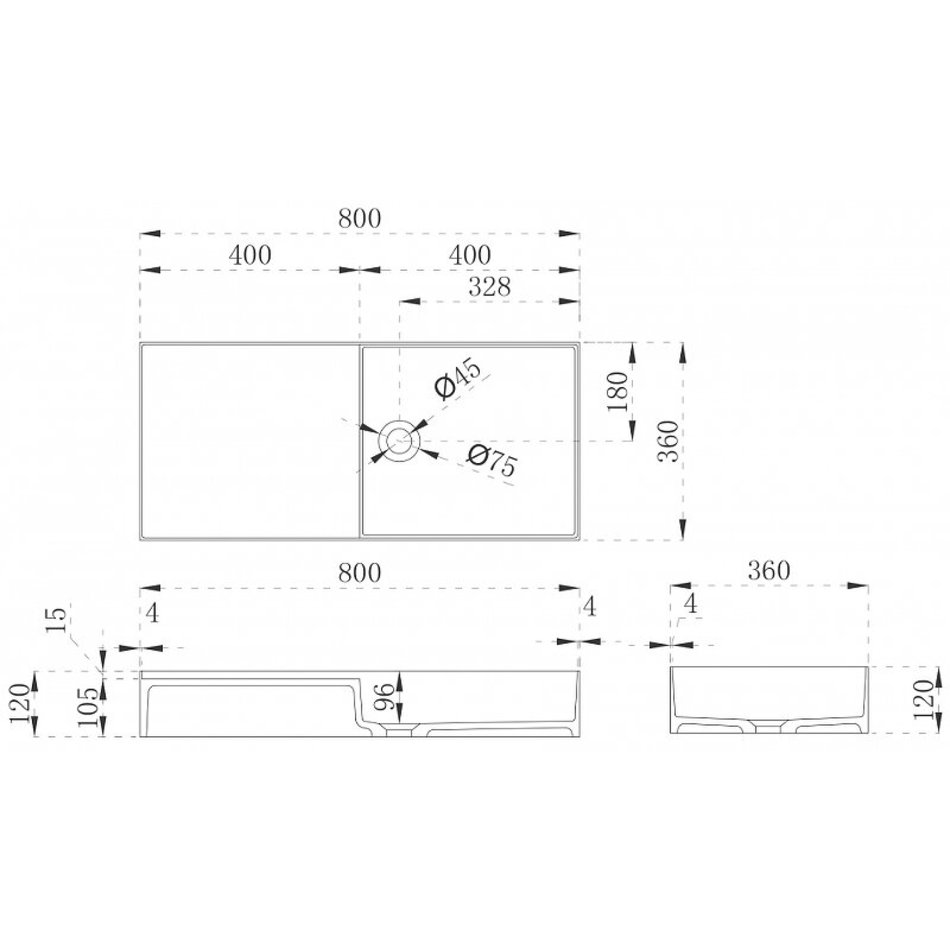 - Габариты (ШхВхГ): 800х120х360 мм.