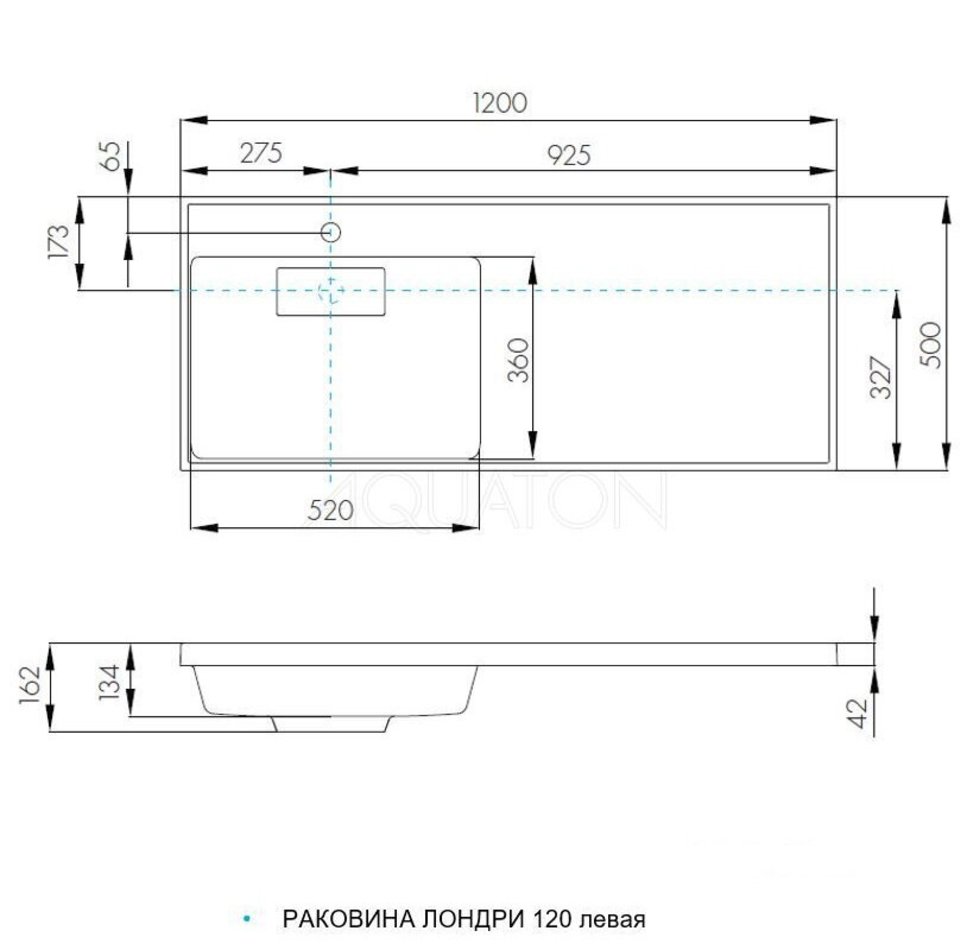Раковина Акватон Лондри 1A72843KLH01L 120 см, искусственный камень, белая, левая