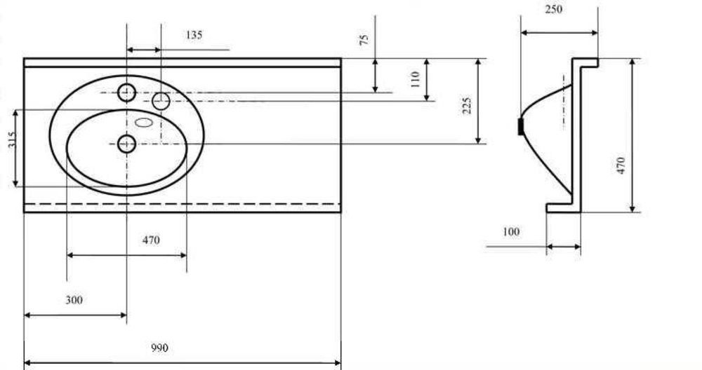 Раковина Акватон Отель 3/1000, 1A70083NOT01 (1A70073NOT01L/1A70083NOT01R)
