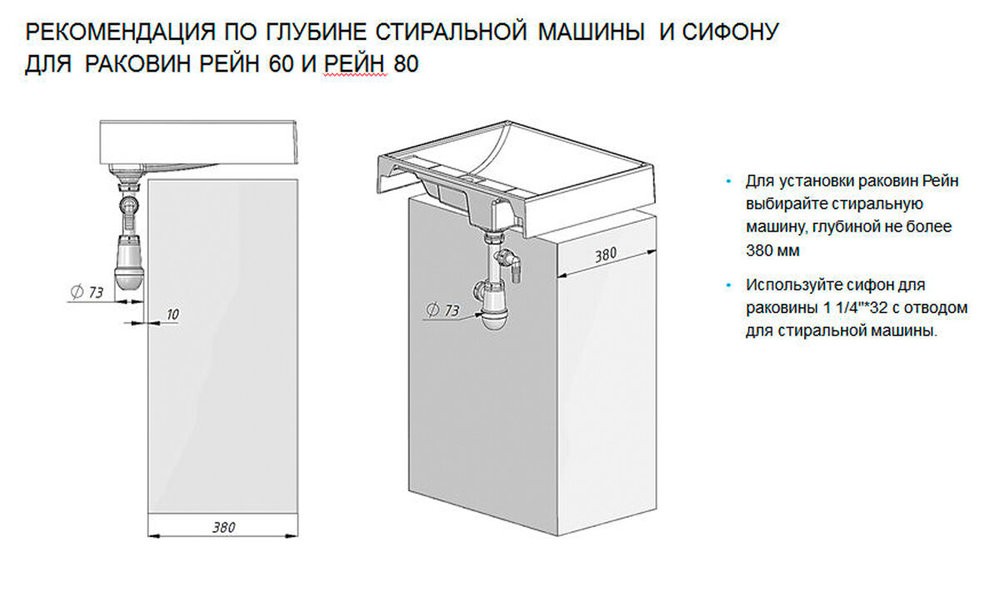 Раковина Акватон Рейн 1A72103KRW010 60 см над стиральной машиной, искусственный камень, белый