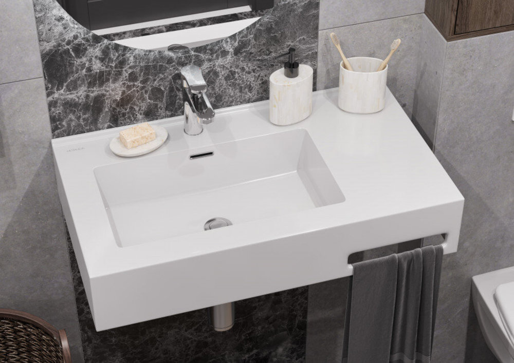 Раковина Aquaton Квадро Про 1A734431QA01L, 80 см, искусственный камень, чаша слева, белая