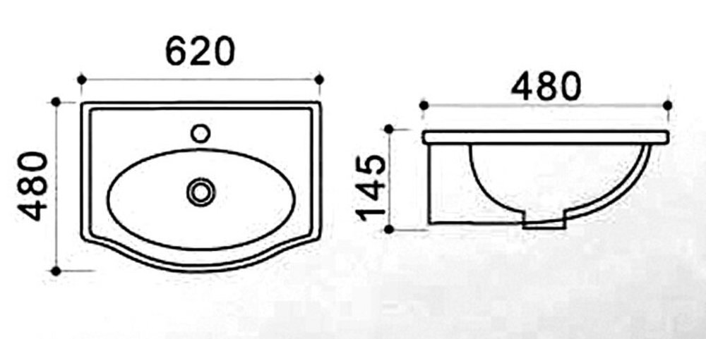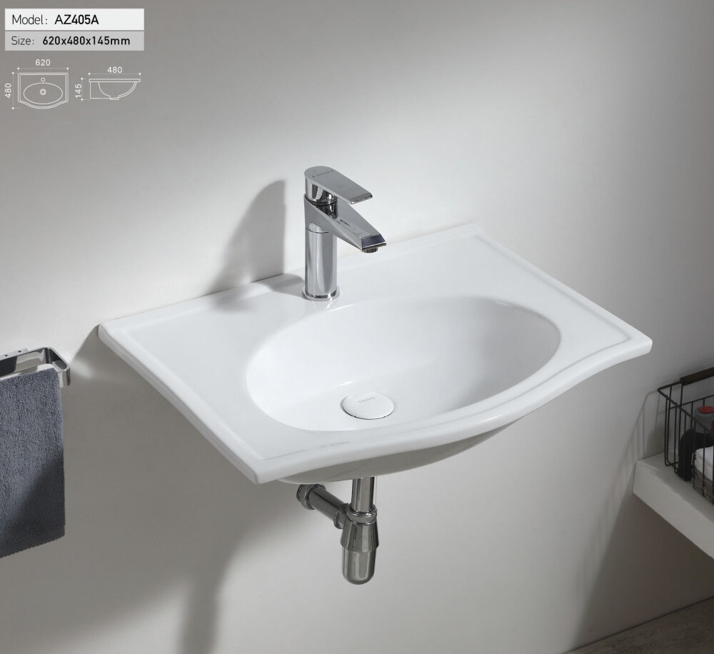Раковина Azario 62 см подвесная, без перелива, 1 отверстие, белый, AZ-405-A