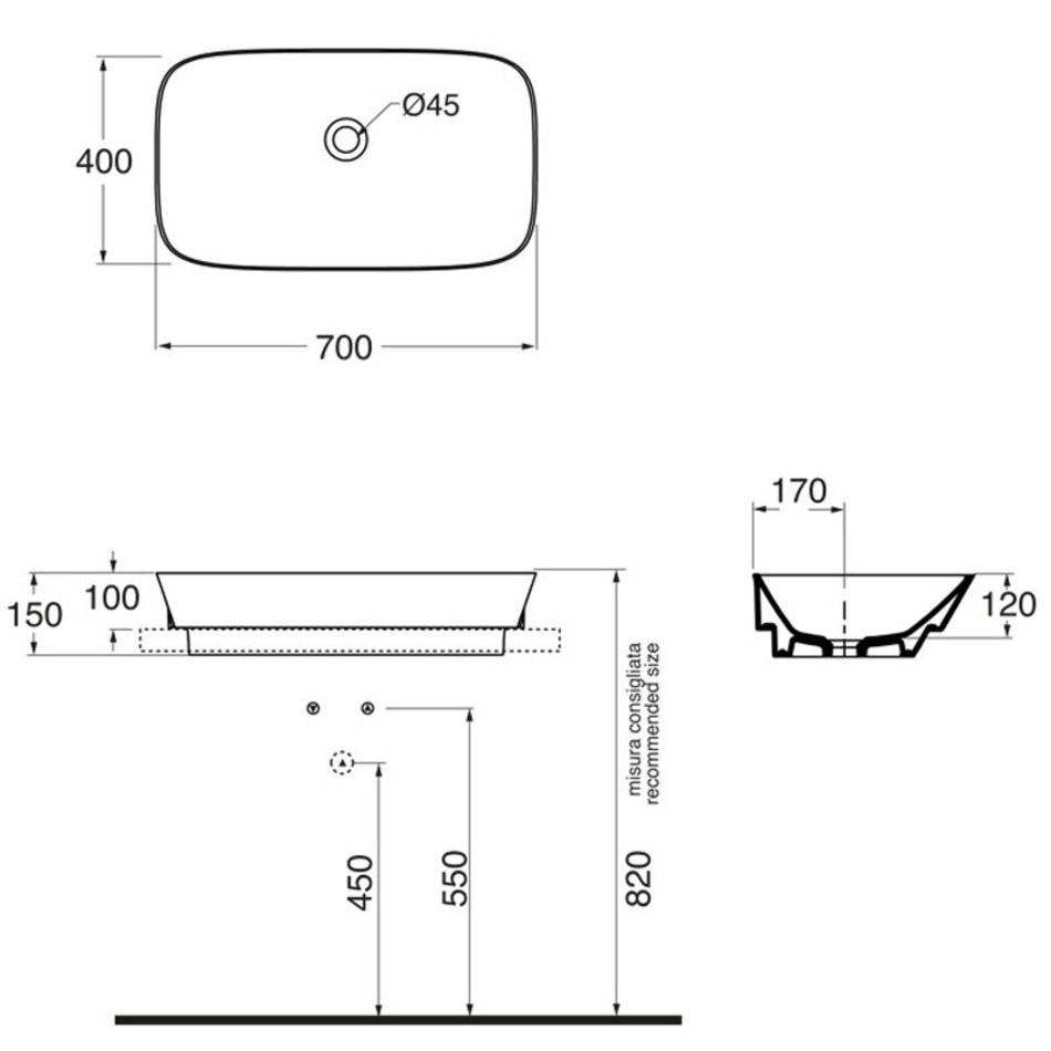 Раковина Azzurra Prua накладная 70 х 40 х 15 см