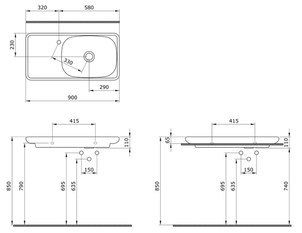 Раковина Bocchi Fenice 1165-002-0126, 90 см, фарфор, белая матовая