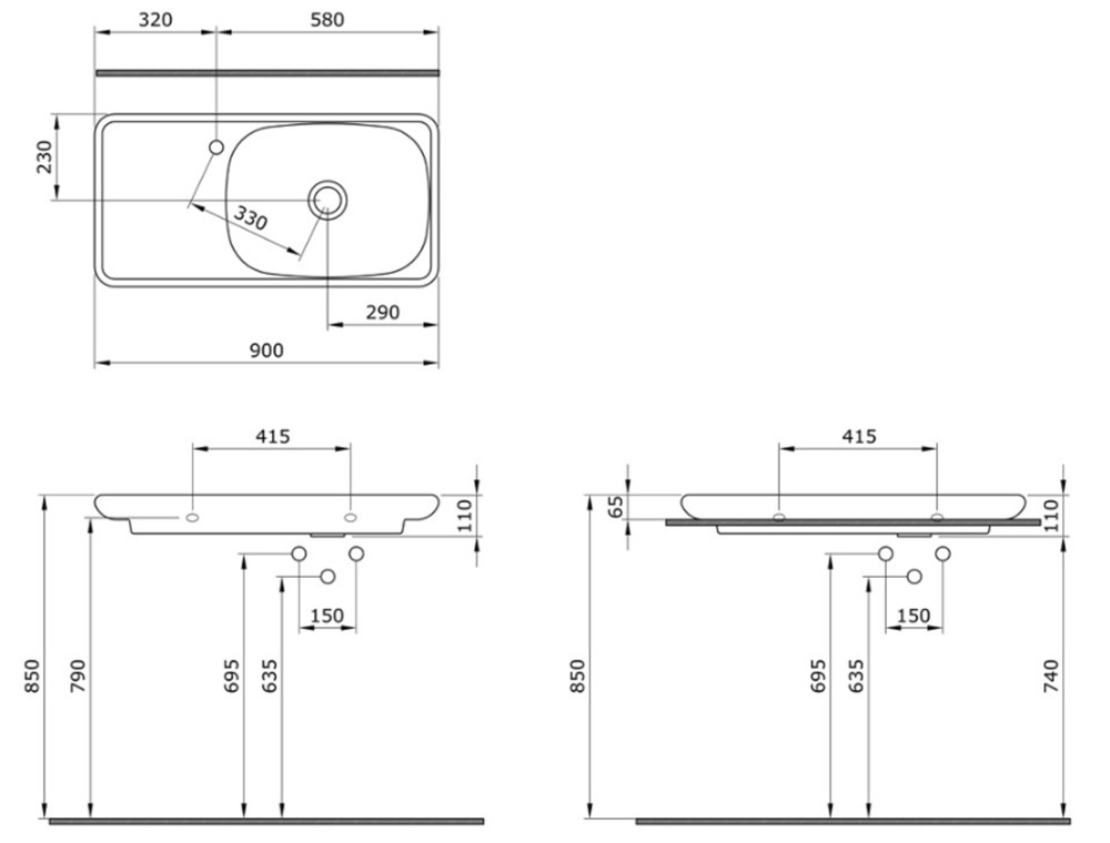 - Установка: накладная( встраиваемая сверху), подвесная