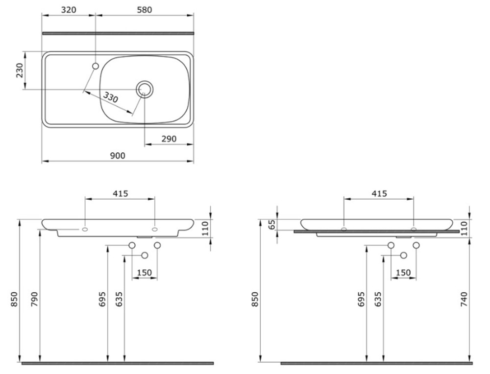 Раковина Bocchi Fenice 1165-020-0126, 90 см, фарфор, антрацит
