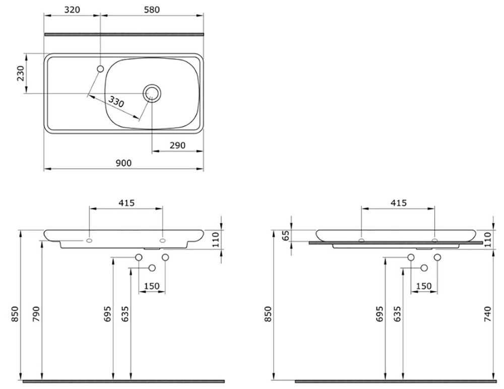 Раковина Bocchi Fenice 1165-029-0126, 90 см, фарфор, светло-голубая