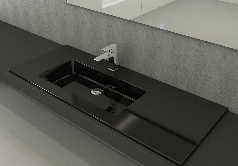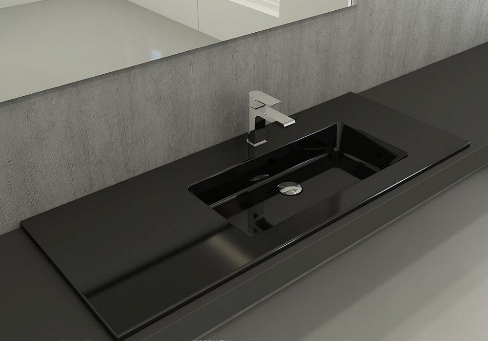Раковина Bocchi Milano 1305-005-0126/1365-005-0126, 121 см, крыло слева/справа, фарфор, черная