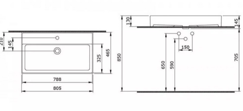 - Отверстия под смеситель