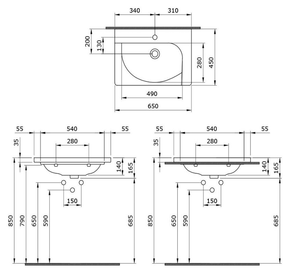- Отверстия под смеситель
