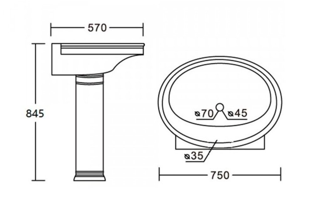 Раковина CeramaLux Lux Classic 4286 75 x 57 x 84.5 см напольная с пьедесталом, белая, золото
